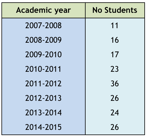 Every Year intake of students will be around 8 -10 Depending on the outgoing students.